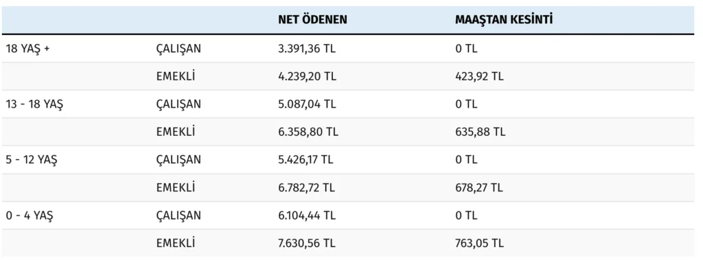 - Çocuklarda ve engelli raporu olan bireylerde destek oranı daha yüksek olabilir.